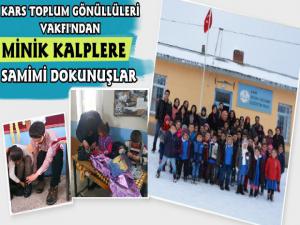 Kars Güncel- Kars Toplum Gönüllüleri Vakfı üyesi öğrenciler Karsın Akyaka İlçesi YerliKavak Köyü İlköğretim Okulu'nda öğrenim gören minik öğrencilerin minik kalplerine dokundular.