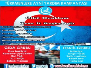Kars Ülkü Ocakları'nın başlattığı kampanyada; "Silahların gölgesinde ölümle burun buruna olan kardeşlerimiz açlıkla, susuzlukla, yoklukla mücadele etmektedir. Tüm vatandaşlarımızdan ricamız Türkmen kardeşlerimizin bir nebze de olsa yaralarınız sarmanız, şimdiden yardım yapanlardan Allah razı olsun." denildi.