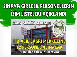 Kars Valiliği 112 Acil Çağrı Merkezi Müdürlükleri Emrinde İlan Edilen Pozisyonlar İçin Giriş(Sözlü) Sınavına Katılmaya Hak Kazanan Adaylara Ait Listesi