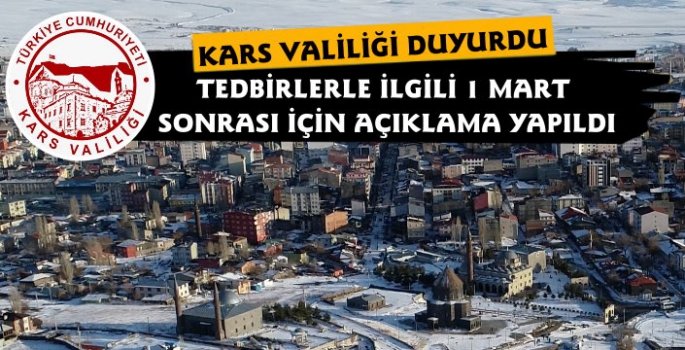Kars Güncel- Kars Valiliği 1 Mart sonrası yeni bir sürece girileceği ve salgının seyrinin il bazlı takibi ile tedbilrerin buna göre belirleneceği belirtildi.