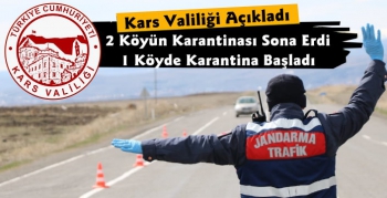 Kars Güncel- Kars Valiliği iki köyde karantinanın sona erdiğini, bir yerleşim yerinde ise karantina ilan edilerek giriş çıkışın yasaklandığını duyurdu.