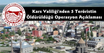 Kars Güncel-Yapılan açıklamada;"İlimiz Kağızman ilçesi Dibekkaya Köyü Yumaklar Deresi bölgesinde İl Jandarma Komutanlığı Komando Birliği tarafından 28 Ağustos 2020 tarihinde yakın hava desteği ve SİHA ile icra edilen operasyonda;1'i Turuncu, 2'si Gri kategoride arandığı tespit edilen toplam (5) BTÖ mensubu (3'ü erkek 2'si kadın) silahları ile birlikte ölü olarak ele geçirilmiştir.