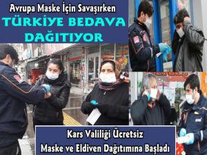 Kars Valiliği koronavirüs tedbirleri kapsamında vatandaşlara ücretsiz maske ve eldiven dağıtımına başladı.
