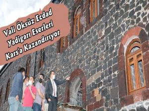 İnceleme programı kapsamında Kars Valisi Türker Öksüz'e restorasyon çalışmalarını yürüten firma yetkilileri eşlik etti.