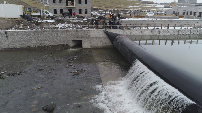 Kars Çayı Islahı işi kapsamında; Dere yatağı ıslahı amacıyla 150 metre betonarme duvar imalatı ve yükseltilmesi, 2.90 metre yüksekliğinde 31 metre genişliğinde ruberdam (şişme savak),ve kontrol odası imalatları yapıldı. İmalatı yapılan şişme lastik savakla, dere üzerinde yaklaşık 3 metre yüksekliğinde bir şelale oluşturularak Kars Çayı, Tarihi Taş Köprü ‘den itibaren yaklaşık 1000 metre geriye doğru şişirilme işlemi bugün itibariyle yapıldı.