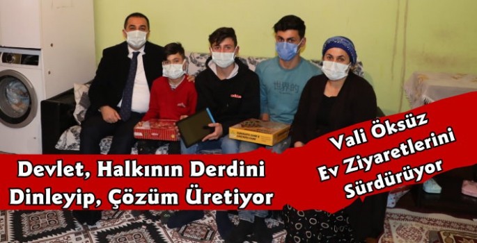Vali/Belediye Başkanı Türker Öksüz'ün bu hafta ki ziyaret edresi Yıldırım ailesi oldu. Vali Öksüz ziyaret ettiği evde bulunan çocuklara çeşitli hediyeler verirken, ailenin sorun ve taleplerini dinledi. Ziyaret sonrasında aile üyeleri Vali Türker Öksüz'e teşekkür ederek duydukları memnuniyeti belirttiler.