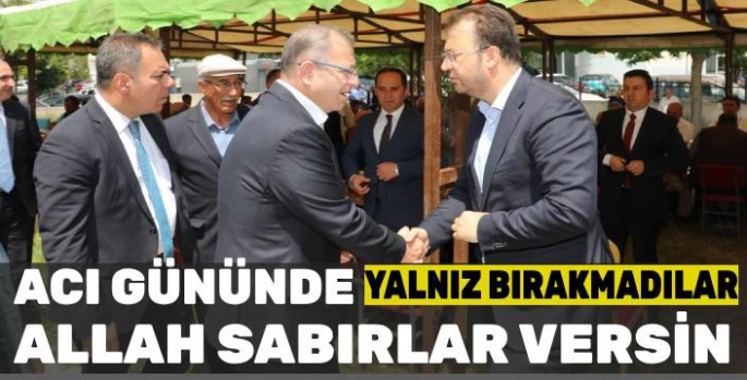 Taziye çadırında İnan Akgün Alp’e destek veren Vali ve Belediye Başkanı, Asiye Alp’ın vefatından dolayı derin üzüntü duyduğunu belirterek, “Merhumeye Allah’tan rahmet, ailesine ve yakınlarına sabır diliyoruz,” dedi.