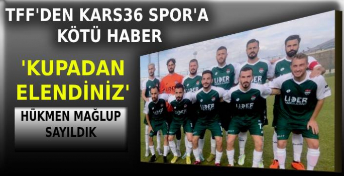 Kupada Doğubayazıt Spor'u kendi saha ve seyircisi önünde ağırlaması beklenen Kars36 Spor’a kötü haber TFF tarafından bildirildi. Kars36 Spor yetkilileri TFF’ye itifazda bulunurken, kararın değişmeyeceği gerçeğiyle Kars36 Spor kupaya hükmen mağlup sayılarak veda etti.