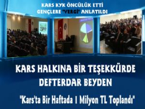 Kahraman verginin ne olduğunu, kimlerden alındığını, önemini renkli sunular eşliğinde anlattı. Salonu dolduran KYK'lıların huzurunda Karslı vergi mükelleflerine vergi vermedeki duyarlılıklarından dolayı teşekkür etti. Vergi haftasında bir milyon Liralık vergi topladıklarını ifade etti.