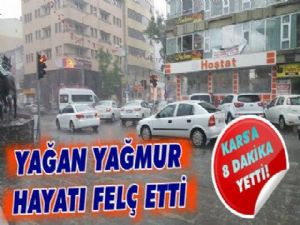 Cadde ve sokakların sular altıda kaldığı kentte, vatandaşlar ise pratik zekalarıyla caddeyi karşıya geçmenin yolunu buldu. Faikbey Caddesi'ne taş dizen vatandaşlar, ayakları ıslanmasın diye dizdikleri taşlardan atlayarak karşıya geçti. Kars merkezde sağanak yağmur etkili olurken, yüksek kesimlerde dolu yağdı. Yağmur ile birlikte hava sıcaklığında düşüş oldu. Öte yandan Kars'ta yağışlı havanın bayram haftasında da devam edeceği bildirildi.