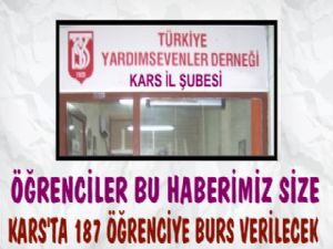 Türkiye Yardım Severler Derneği Kars Şubesi 2016-2017 eğitim öğretimine başlayan 187 öğrenciye burs veriyor.