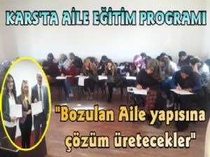 AEP Eğitici EğitimiProgramı kapsamında dersler Kafkas Üniversitesi Öğretim Görevlilerinden Doç. Dr. Murat TAŞDAN, Yrd. Doç. Dr. Ali İbrahim Can GÖZÜM, Öğretim Görevlisi Emrah ÖZTÜRK, Öğretim Görevlisi Gökbörü ÖNALP; Halk Sağlığı Müdürlüğü Hekimlerinden Dr. Özgü EKİNCİ ERDOĞAN; Kars- Ardahan Bölge Barosu Avukatlarından Av.Ayşegül POLAT ve AEP FormatörüPsk. Ebru AKÜZÜM tarafından verilmiştir. 23 Ekim Pazartesi günü Aile ve Sosyal Politikalar İl Müdürlüğü Eğitim Salonunda Açılışı yapılan programa İl Müdürü Aydın ACAY ve Kuruluş Müdürleri katılmıştır. Açılış programından sonra ders süreci başlayan program 27 Ekim Cuma günü sona ermiştir. Eğitim boyunca eğitici adaylarına; AEP'in alanları olan Aile Eğitim ve İletişimi, Sağlık, Medya, Hukuk ve İktisat alanlarının incelenmesi konusunda uzmanları tarafından dersler verildi. Ayrıca bir yetişkin eğitim programı olan AEP' in ailelere aktarımı noktasında profesyonel bir yaklaşım oluşturmak üzere (eğitim ortamının yönetilmesi, yetişkin eğitimi, eğitim içeriklerinin sunumu vb. konularında) Kafkas Üniversitesi' nin eğitim alanında uzman Öğretim Üyelerince eğitim dersleride verilmiştir. Oldukça verimli geçen bu eğitim sonunda eğitime katılan 19 Eğitici Adayı yapılan sınavı geçerek AEP Eğiticisi Sertifikası almaya hak kazanmıştır.
