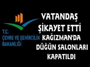 Çevre ve Şehircilik Bakanlığı , Kağızman Belediyesi tarafından ruhsat verilen,Cansu,Deniz ve Havuzbaşı Düğün salonlarında 'canli müzik' izni bulunmadığı , okul ve öğrenci yurtları yanında bulunduğu iddiası nedeniyle düğün salonunun işletmesini durdurma kararı aldı.