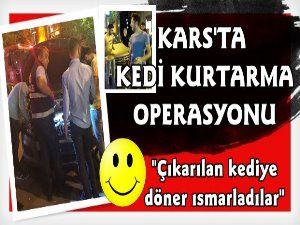 Atatürk Caddesi üzerine aracını park eden Sidar Alibeyoğlu, aracın motor kısmından gelen sesleri duydu. Alibeyoğlu , 36 FS 953 plakalı aracına giren kedinin çıkarılması için itfaiyeden yardım istedi. İtfaiye ekipleri olay yerine gelene kadar geçen sürede araç sahibi ve çevredeki vatandaşlar kendi imkanları ile kediyi çıkarmaya çalışmaları esnasında renkli görüntüler ortaya çıktı. Vatandaşlar sıkışan yavru kediye cep telefonları ile köpek havlama seslerini dinlettiler, sonuç alınamayınca çevredeki lokantalardan yemek getirip çıkmasını bekleseler de sonuç alınamazken itfaiye ekipleri olay yerine geldi. Kars Belediyesi İtfaiye ekibi aracın motor kaputunu açarak kediyi çıkarmaya çalıştı. Bu defada başarılı olunamayınca vatandaşlar oto tamircisi Ulaş ustayı kediyi çıkarması için çağırdı. Aracın muhafaza kısmı açıldıktan sonra yavru kedi sıkıştığı yerden çıkartılırken, araç sahibi ve vatandaşlar yavru kedinin zarar görmeden kurtarılmasıyla derin bir nefes aldı. Çıkartılan kediye araç sahibi ve vatandaşlar döner ısmarlarken, bir saatlik uğraşın ardından araçtan çıkarılan yavru kedi hızla uzaklaştı.