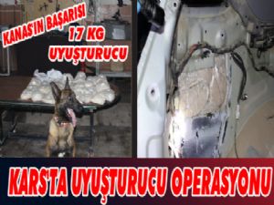 Kars Güncel-Kars İl Emniyet Müdürlüğü Kaçakçılık ve Organize Suçlarla Mücadele Şube Müdürlüğü (KOM) ekipleri, kaçakçılığı önlemek amacıyla yürütülen çalışmalarda durumundan şüphelenilen bir otomobili kent girişinde durdurdu. Durdurulan otomobilde narkotik dedektör köpeği Kanas eşliğinde yapılan aramada, aracın sol arka bagaj boşluğuna gizlenmiş 32 paket halinde toplam 17 kilo 143 gram uyuşturucu madde ele geçirildi. Ele geçirilen uyuşturucunun Kars'tan batı illerine aktarılmak üzere Kars'tan geçirilmek istendiği belirlendi. Olayla ilgili gözaltına alınan araç sürücüsü, çıkarıldığı mahkemece tutuklandı.
