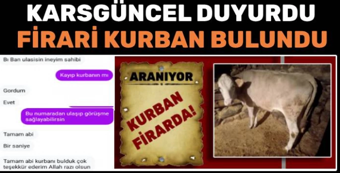 Geçtiğimiz günlerde Kars Güncel tarafından duyurulan haberde, Evren Betuz tarafından satılan ve merkeze bağlı Ortalar Köyü'nde yaşayan Cantaş Kişni tarafından satın alınan kurbanlık düvenin, kamyona yüklenirken kaçtığı ve tüm aramalara rağmen bulunamadığı belirtilmişti.