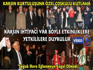Karslı aşıkla ellerine sazlarını alarak Karsın kurtuluş mücadelesini simgeleştiren eserler ile "Karsın Kalasından Toplar Atılır" eserlerini seslendirdiler. Daha sonra KARSAD Sanatçılar Korosu sahne alarak eserlerini seslendirerek yüzlerce Karslı vatandaşı soğuk havaya rağmen gönüllerinde eğlendirmeyi başardı. Daha sonra kafkas gösterisi ve ardından Karslı sanatçı Yudum konseri ile devam eden etkinlik gecenin ilerleyen saatlerinde son buldu.