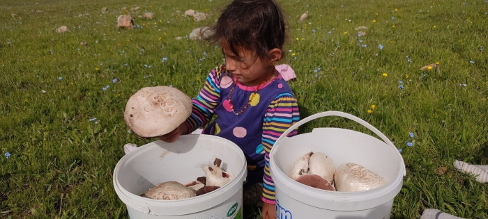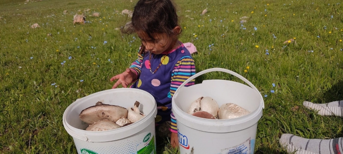 Kars'ta yağmur sonrası ara ara yüzünü gösteren güneşle birlikte çayır mantarı bulmak isteyen vatandaşlar arazilere akın ediyor.
