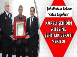 Kars Güncel- Kars Valisi Türker Öksüz, Vanın Bahçesaray ilçesinde kurtarma çalışmaları sırasında çığ altında kalarak şehit olan Jandarma Uzman Çavuş Oğuzhan Ulaş Avcının Şehitlik Beratını ailesine tevcih etti.