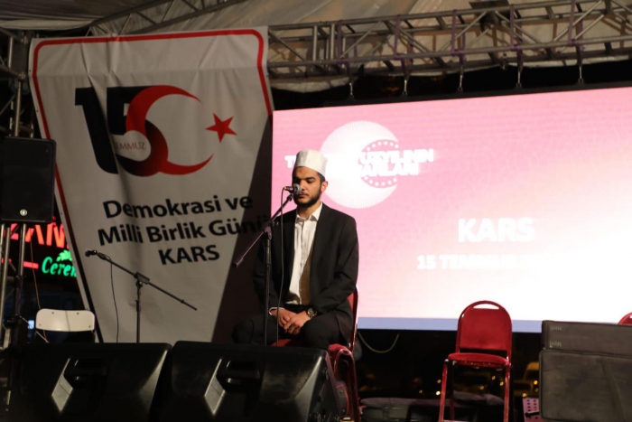 15 Temmuz Demokrasi ve Milli Birlik Günü programı, Vali/Belediye Başkan Vekili Türker Öksüz, Kars Milletvekili Adem Çalkın, protokol üyeleri, siyasi parti ve STK temsilcileri ile binlerce vatandaşın katılımıyla gerçekleştirildi. Tören Alanında ellerinde bayrakla toplanan binlerce vatandaş, Kuran-ı Kerim tilaveti ardından protokol konuşmalarını ve birliğin gücü mesajlarını dinledi.