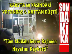 Kars Güncel- Edinilen bilgiye göre saat 21:10 sıralarında Şehitler Mahallesi Ahmet Arslan Bulvarı üzerinde bir apartmanın 3. katında ki dairenin penceresinden bir kişinin aşağı düştüğünü gören çevre sakinleri durumu sağlık ekiplerine bildirdi.