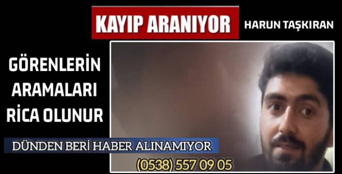Kars'a gittikten sonra geri dönmeyen gencin telefonlarına ulaşamayan aile durumu jandarmaya bildirdi. Bildikleri her yerde Harun'u arayan Taşkıran ailesi, gören ve duyanlardan gelecek sevindirici haberi bekliyor.