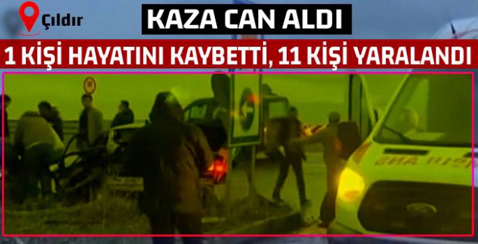 Kaza dün Ardahan’ın Çıldır ilçesi Âşık Şenlik karayolunda meydana geldi. 34 TA 0373 plakalı araç ile 28 ACM 171 plakalı araç çarpıştı. Kazada, araçlarda bulunan 1 kişi hayatını kaybederken 11 kişi yaralandı. Kaza yerine jandarma, AFAD ve sağlık ekipleri sevk edildi. Ambulanslarla ardahan Devlet Hastanesi ile Çıldır İlçe Devlet Hastanesine kaldırılan yaralılardan 1'sinin durumunun ağır olduğu öğrenildi.