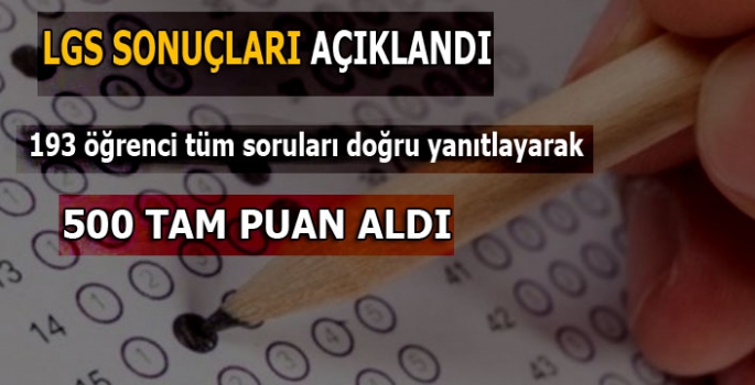 LGS kapsamındaki merkezi sınava katılan 193 öğrenci tüm soruları doğru yanıtlayarak 500 tam puan aldı, öğrencilerin yaklaşık yüzde 10'u, 400-500 puan aralığında yer aldı.