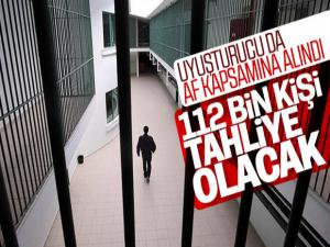 Uyuşturucu suçlarının da kapsam içine alınmasıyla birlikte tahliye olması beklenen mahkum sayısı 112 bine çıktı.