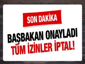 Tüm kamu çalışanlarının ikinci bir emre kadar yıllık izinleri kaldırılmıştır. Söz konusu kamu çalışanlarından halen izinde bulunanlar en kısa sürede görevleri başına döneceklerdir" denildi.