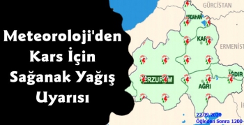 Meteoroloji 12. Bölge Müdürlüğü'nden yayınlanan son hava tahmin raporuna göre Kars'ta 22 Eylül itibariyle hafta sonuna kadar sağanak yağış etkili olacak. Yapılan değerlendirmelere göre Ağrı, Iğdır, Erzurum, Kars, Ardahan, Artvin'nin sağanak yağıştan etkileneceğini duyurdu. Yağışın 22 Eylül Salı günü 12:00-18:00 saatleri arasında etkili olması bekleniyor.