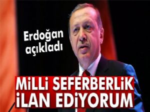 Cumhurbaşkanlığı Külliyesi'nde muhtarlara hitap eden Cumhurbaşkanı Recep Tayyip Erdoğan, 'Milli seferberlik ilan ediyorum' dedi.
