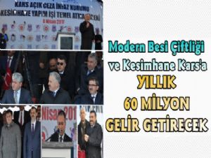 Kars ili bölgesinde yıllık 60 milyon lira gelir elde edileceğini belirten Yıldırım, "Kars Açık Ceza İnfaz Kurumu Modern Besin Çiftliği ve Kesimhane Projesi ile bu entegre tesis hayvancılığın yoğun olarak yapıldığı Kars ili bölgesinde bir ilk olacak ve başta Ceza İnfaz Kurumları olmak üzere tüm bölge halkına hitap edecektir. Bu projenin tamamlanmasına müteakip ilk yılda yaklaşık 10 bin hayvan kesimi gerçekleştirecek" dedi.