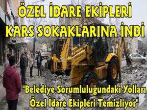 Kars Güncel- Kars İl Özel İdare bir taraftan Kars'ın köylerinde çalışırken diğer taraftan da Kars merkezde karla ve buzla mücadele çalışması başlattı. Kars İl Özel İdare Ekipleri Kars'ın işlek caddelerinde kar ve buz temizleme çalışmalarına başladı. Kars İl Özel İdare Ekipleri 1 kamyon 1 kepçe ve 1 greyderlerle yol kenarlarında ve kaldırımlarda biriken kar ve buz kütlelerini temizleyerek şehrin dışına taşıyorlar. Şehrin yoğun vatandaş olduğu kısımlarda çalışmalarını devam ettiren ekipler ara ara Kars Merkez cadde ve sokaklardaki bahar temizliği çalışmalarını sürdürecekler.