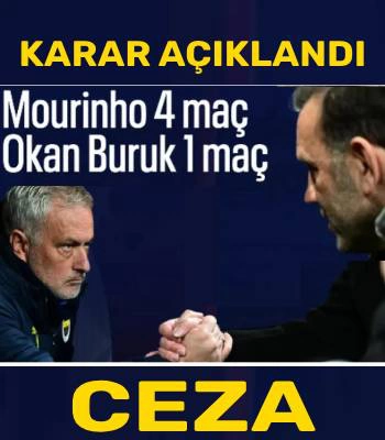 Fenerbahçe'nin Gaziantep ile oynadığı maçta tedbirli olan Mourinho, Antalyaspor, Samsunspor ve Bodrumspor maçlarında cezasını tamamlayacak. Okan Buruk ise Galatasaray'ın Kasımpaşa ile oynayacağı maçta cezalı olacak. Dursun Özbek’e 34 gün hak mahrumiyeti ve 3 milyon TL para cezası verildi.