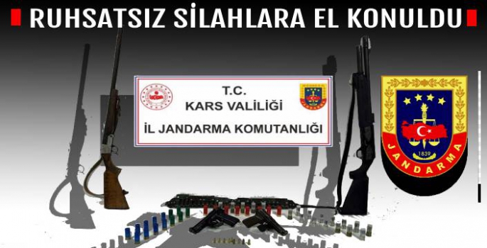Kars İl Jandarma Komutanlığı İstihbarat Şube Müdürlüğü, Kaçakçılık ve Organize Suçlarla Mücadele Şube Müdürlüğü, JASAT Timleri ve Merkez İlçe Jandarma Komutanlığınca ortak yapılan çalışmada ruhsatsız silahlar ele geçirildi.
