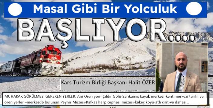 Özer, açıklamasının sonunda ise; ‘MUHAKAK GÖRÜLMESİ GEREKEN YERLER: Ani Ören yeri- Çıldır Gölü-Sarıkamış kayak merkezi-kent merkezi tarihi ve ören yerler –merkezde bulunan Peynir Müzesi-Kafkas harp cephesi müzesi-kekeç köyü-atlı cirit-ve dahası…’ notuyla herkesi Doğu Ekspresi ile unutamayacağı anılar yaşamaya davet etti.