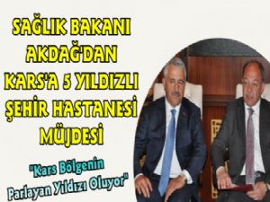 Sağlık Bakanı Recep Akdağ ile Ulaştırma, Denizcilik ve Haberleşme Bakanı Ahmet Arslan, çeşitli temaslarda bulunmak üzere geldikleri Kars'ta sağlık personeliyle değerlendirme toplantısı yaptı. Kars Valiliği'nde basına kapalı olarak yapılan toplantı sonrasında basına mensuplarına değerlendirmelerde bulunan Bakan Akdağ, Kars'a 600 bin nüfusa hizmet verecek mükemmel bir Şehir Hastanesi yapacaklarının müjdesini verdi.