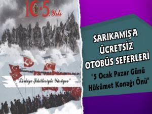 Sarıkamış Şehitlerini anma etkinlikleri kapsamında gerçekleştirilecek olan "Türkiye Şehitlerine Yürüyor" etkinliği için Kars Merkezden Sarıkamış ilçesine Kars Valiliği tarafından ücretsiz otobüs seferleri düzenlenecek.