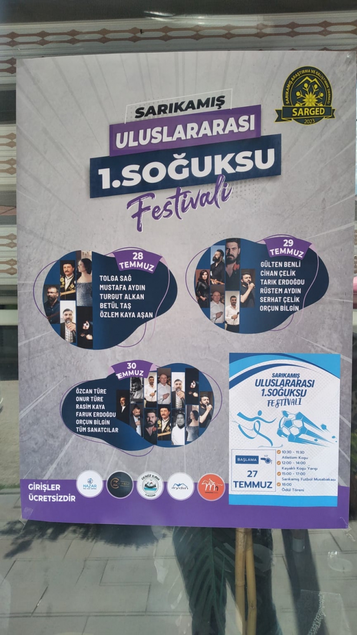 Türkiye’nin İsviçre’si olarak bilinen ve 90 bin şehidin yattığı Sarıkamış’ta 4 gün süreli festival var. 27-30 Temmuz 2023 tarihleri arasında Soğuksu meydanında yapılacak olan “Sarıkamış Uluslar arası 1. Soğuksu Festivali’nin ilk günü bazı sportif yarışmalar ve protokol konuşmaları ile ödül töreni ile başladı.