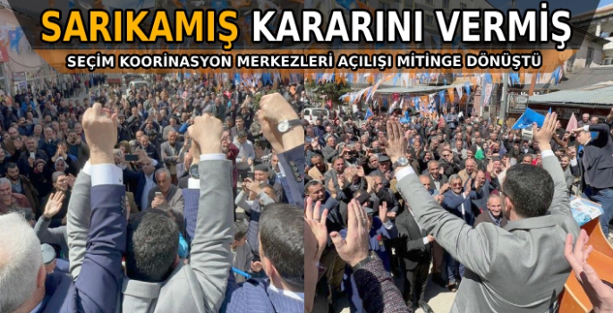 Merkezdeki Seçim Koordinasyon Merkezi’nin ardından Kağızman ilçesinde kalabalık bir katılımla SKM bürosunu açan AK Parti Kars heyeti, bugün de Sarıkamış ve Arpaçay ilçelerindeki SKM bürosu açılışında deyim yerindeyse gövde gösterisi yaptı.