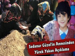 Karar sonrası anne Handan ve baba Abdullah kızlarının mezarına koştu. Acılı aile Sedanur Güzel'in mezarını öperek katillerinin hak ettiği cezayı aldığını söyledi. 'Bir gül idim açmadan soldum. Muradıma ermeden melek oldum' diye not yazılı mezarın her iki tarafına da küçük kızın ölmeden önceki son 23 Nisan Ulusal Egemenlik ve Çocuk Bayramında gösteride kullandığı yazmalarını asıldığı görüldü. "İçin rahat olsun güzel kızım, sen yerinde rahat uyu" diyen anne Handan Güzel, mezardaki fotoğrafını öptü.