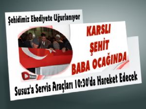 Kars'lı Şehidimiz Ömercan YEKEBAĞCI bugün cuma namazına müteakip Susuz'da ebediyete uğurlanacaktır.