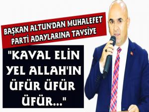Başkan Coşkun Altun sosyal medya hesabı üzerinden yaptığı paylaşımda; "Siyasi propaganda, seçim yarışına giren her parti adayı ve her şahsın tabi en doğal hakkıdır. Ancak; propaganda yaparken tutarlı olmak,kaynak göstermek,uygulanabilirliğine önce kendini inandırmak ve halkı aldatmaya kaçan uçuk vaatlerden uzak durmak, 'Hak'a ve halka hizmet' adı altında belediyecilik ve ülke kalkınması adına geçmişte teminat göstereceğimiz işler yapabilmiş olmak, propagandanın en önemli incelikleridir.