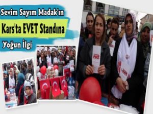AK Parti Genel Merkez Kadın Kolları MKYK Üyesi Sevim Sayım Madak da "Ben tabi görevim gereği birçok illeri geziyorum. Son 1 haftadır da Kars'tayım. Kars çok şanslı bir şehir, bir kere Türkiye'nin 3 numarası buradan, Bakan beyin burada çok büyük bir teveccühü var. Yaklaşık 70-80 kadın ile sahadayız. İlmek ilmek sokakları, caddeleri, mahalleleri dolaşıyoruz. Bizim sürekli kadınlarla sıcak temasları olan bir teşkilatız, dünyada da en büyük teşkilata sahibiz. 4,5 milyon kadın üyesi olan bir partiyiz. Kadınlarımızın burada çok fedakarlıkları var, söz memleket olunca kadınlarımız çocuklarını evde bırakarak buraya geliyorlar, nöbet çıkıp geliyorlar. Söz memleket ise gerisi teferruat oluyor." dedi.