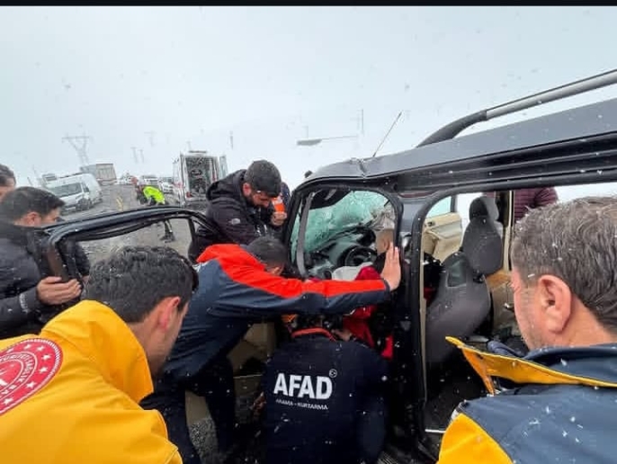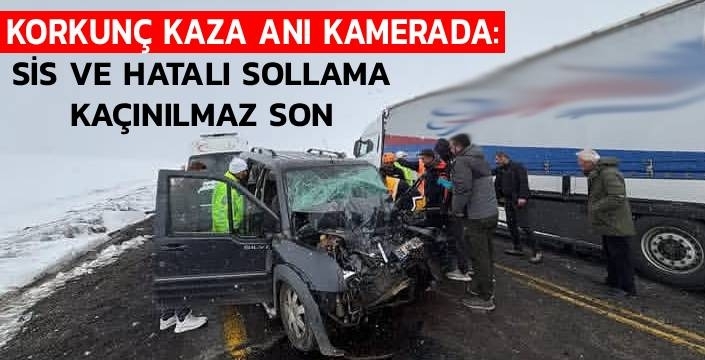 Edinilen bilgilere göre, Ardahan istikametine doğru seyir halinde olan hafif ticari araç, sis nedeniyle görüşün oldukça düştüğü yolda önündeki TIR’ı sollamak istedi. Bu sırada karşı yönden gelen başka bir TIR ile çarpışma yaşandı. Şiddetli çarpışma sonucu hafif ticari araç adeta hurdaya döndü.
