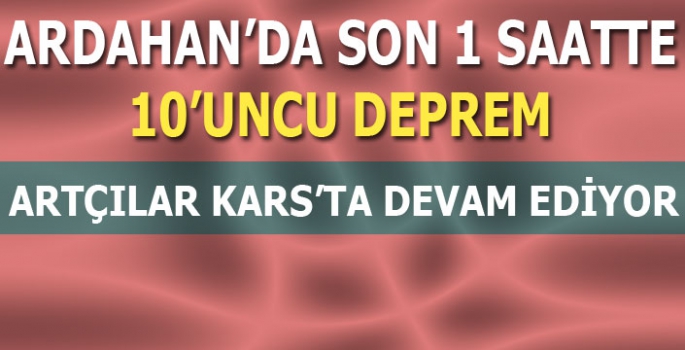 Ardahan'da ilki saat 17:08 de meydana gelen 5 büyüklüğündeki depremin ardından son 1 saatte toplamda 10 deprem daha meydana geldi.
