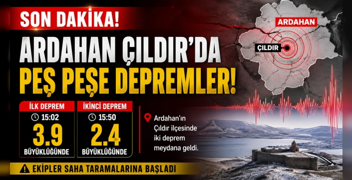 Ardahan’ın Çıldır ilçesinde bugün öğleden sonra kısa aralıklarla iki deprem meydana geldi.