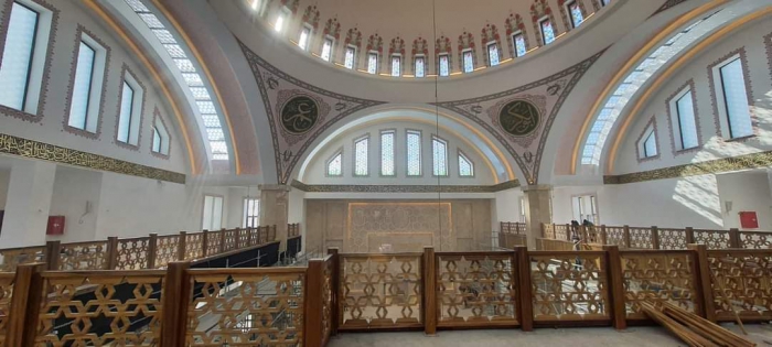 Kars'ta 17 bin 500 metrekare alan üzerine inşaa edilen ve ibadete açılması için gün sayan Sultan Alparslan Külliyesi'nde çalışmalar devam ediyor.