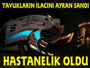 Kars Güncel- Kars'ta E.N.Ş isimli çocuk babasının hastalanan tavukları için hazırladığı ve bozulmaması için buzdolabında sakladığı ilaç karışımını ayran zannederek içerek zehirlendi. Tavukların ilacını içtiğini anlayan E.N.Ş.nin babası Sarıkamış Devlet hastanesine küçük çocuğu götürdü. Hastanede yapılan ilk müdahalede hayati tehlikesinin olmadığı anlaşıldı. Olayla ilgili Cumhuriyet Savcısı soruşturma başlatıldı.